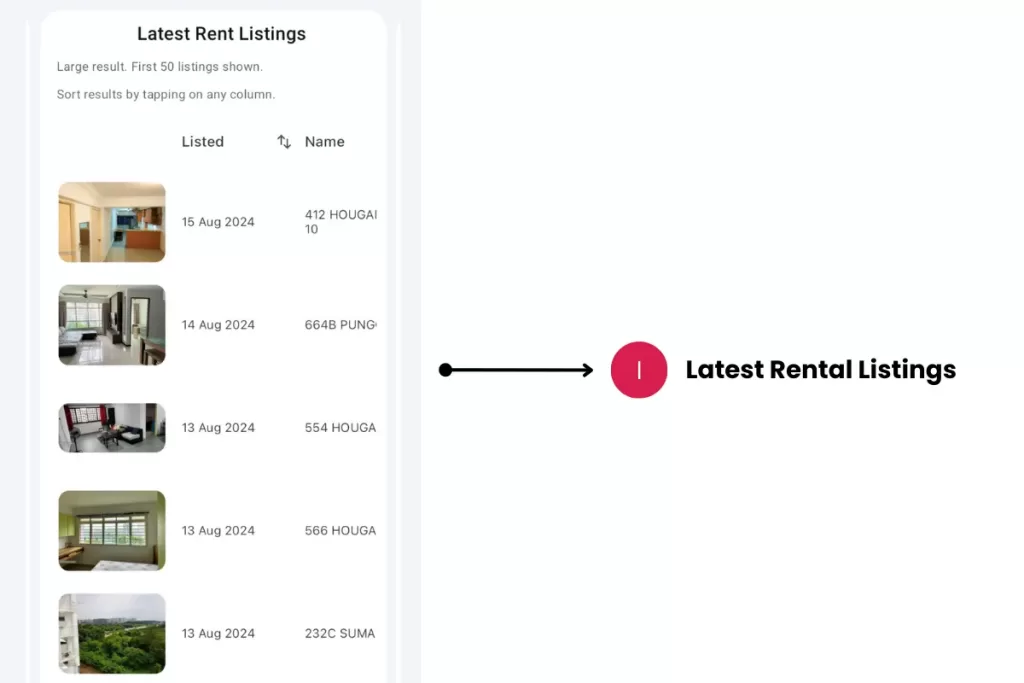 - Tip: The list is sorted by latest transactions first. Tap on any row to go to the Property Details page.